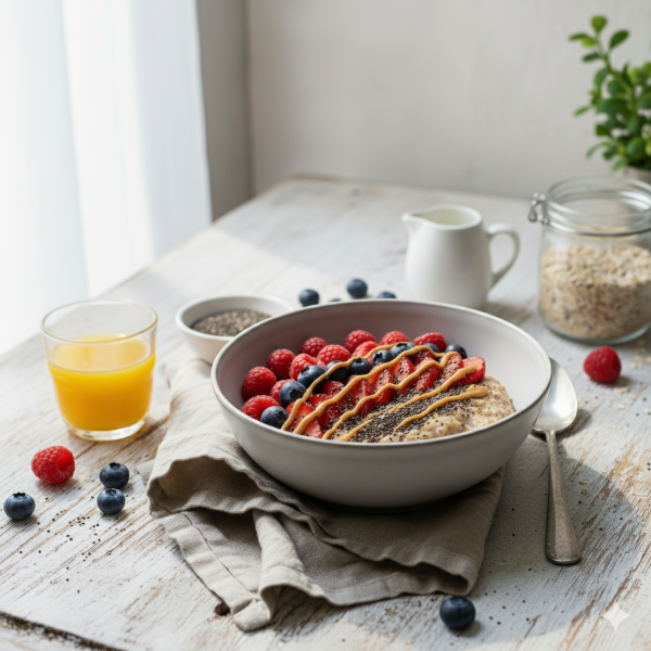 Dans une casserole, mélangez les flocons d’avoine, les graines de chia, le lait et la cannelle. Faites cuire à feu doux pendant 5 à 7 minutes en remuant de temps en temps, jusqu’à ce que le porridge épaississe. Versez dans un bol et ajoutez les fruits rouges. Ajoutez le beurre de noix pour un peu plus de gourmandise.